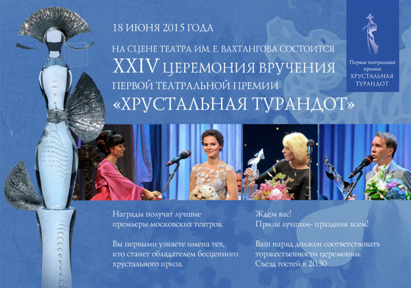 «Хрустальная Турандот». XXIV церемония награждения лауреатов 18 июня 2015 года в 21.00, театр им. Евг. Вахтангова