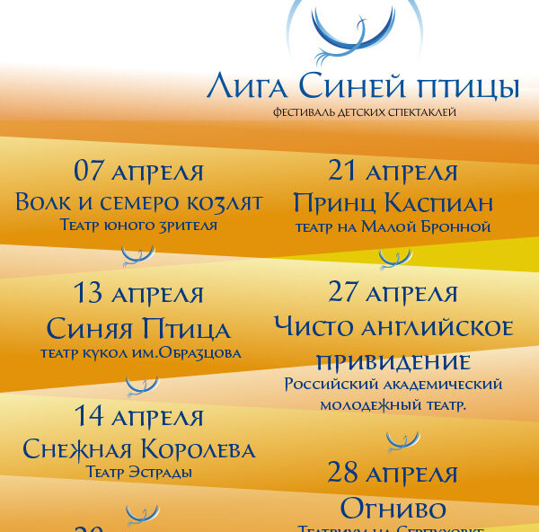 Афиша фестиваля спектаклей для детей «Лига Синей птицы» Апрель 2013