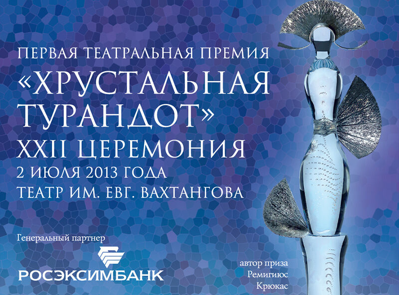 Первая театральная премия «Хрустальная Турандот». XXII церемония награждения лауреатов 2 июля 2013 года в 20.30, театр им. Е. Вахтангова